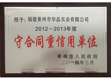 • 榮獲泉州市人民政府重合同守信用單位