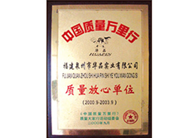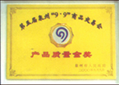 • 連續(xù)三屆榮獲泉州市人民政府產(chǎn)品質(zhì)量金獎(jiǎng)