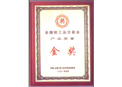 • 榮獲全國輕工品產(chǎn)品質(zhì)量金獎(jiǎng)