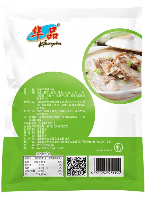 將鹵品焯水處理后加本品慢火燉一小時即可。另加料酒、生抽、冰糖、油爆姜片同鹵,味更香